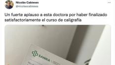 “Orgasmo farmacéutico”, ha escrito Martín en Twitter. Una publicación que lleva en varios días casi 8.000 ‘me gusta’ y numerosos comentarios. En el tuit, numerosos farmacéuticos se han tomado con humor la buena caligrafía de la nota y algunos dudan incluso de que un médico haya podido hacerla.