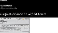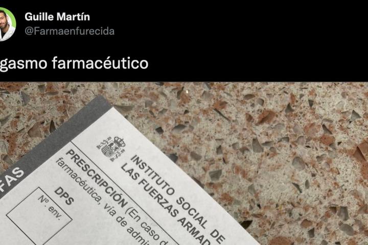 “Orgasmo farmacéutico”, ha escrito Martín en Twitter. La publicación ya supera, en menos de un día, los 5.600 me gusta. Y, en la imagen que ha subido junto a esas dos palabras, resalta la buenísima letra que permite leer a la perfección el medicamento.