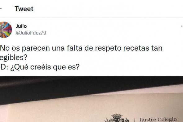 En vista a su frustración, decidió compartirla con el resto de usuarios por si alguien podía adivinar de qué medicamento se trataba a la vez que expresaba su indignación por la forma de escribir tan descuidada de algunos médicos. “¿No os parecen una falta de respeto recetas tan ilegibles?”, comentaba en el tuit.