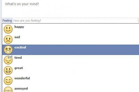 Mientras los personajes desaparecen gradualmente y la mensajería instantánea ofrece emoticonos, Facebook pone a disposición de sus usuarios la posibilidad de actualizar su estado y compartir sus "sentimientos" mediante iconos.