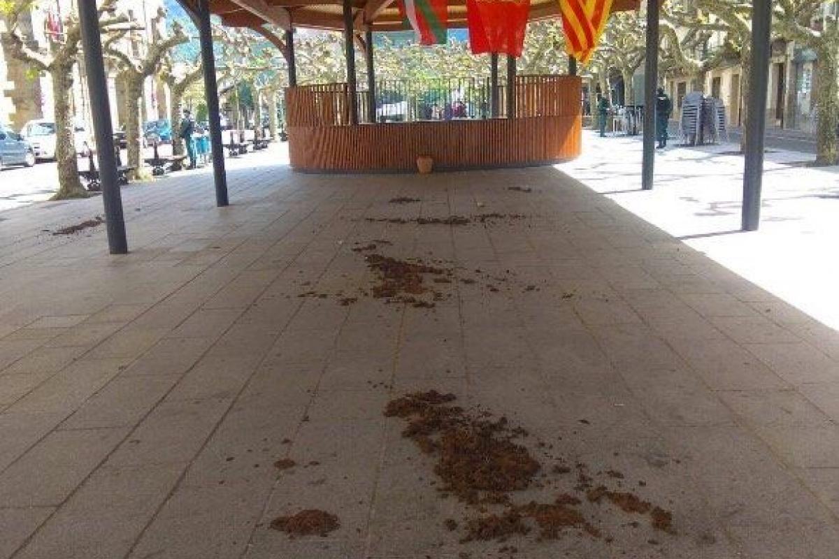 Un grupo de encapuchados han esparcido estiércol y han colgado pancartas ofensivas en los alrededores del lugar donde el PP de Navarra iba a celebrar un mitin este lunes en Etxarriz-Aranatz.