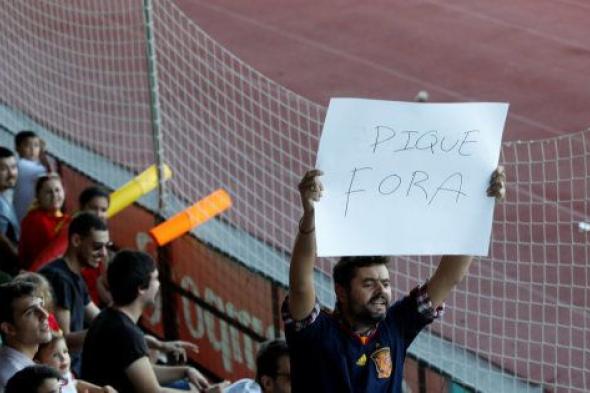 Todo ha sucedido minutos antes de que comenzara el entrenamiento de España cuando un hombre de unos 50 años ha desplegado una primera pancarta que ponía: "Yo no quiero que te vayas, quiero que te echen. Eres vomitivo". En otra se podía leer "Piqué fuera".