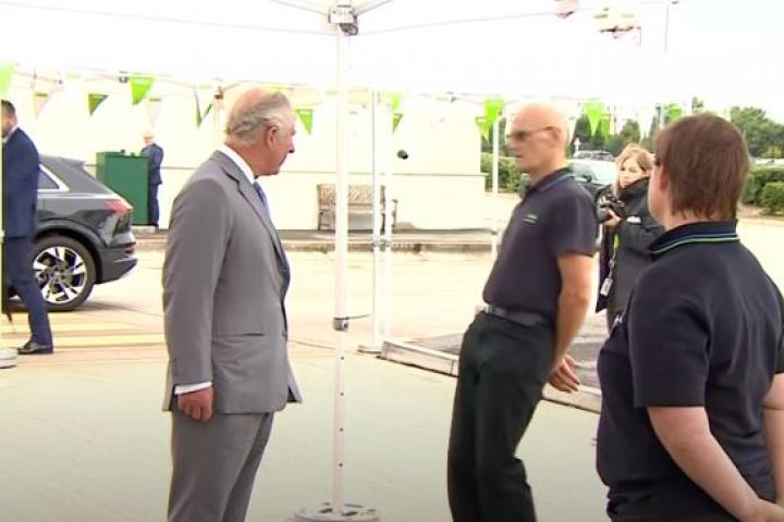 El hijo de Isabel II y heredero al trono de Inglaterra se desplazó hasta el centro de distribución para dar las gracias a los empleados por su labor durante la crisis del coronavirus.