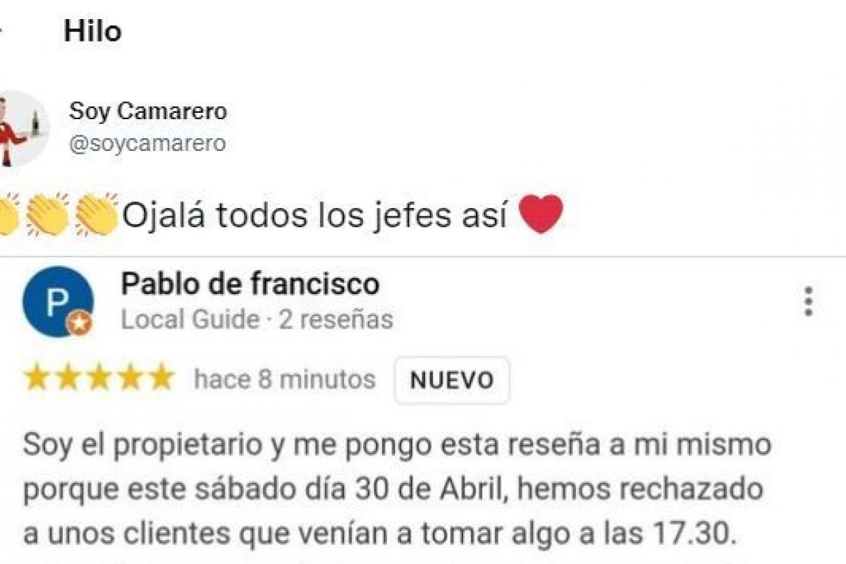 Un hostelero hace algo insólito: escribe esta reseña a su propio negocio y sale aplaudido