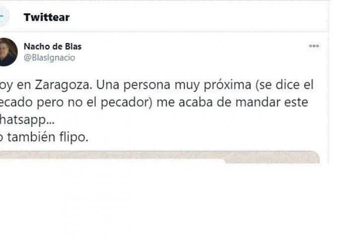 De Blas, que es también profesor del departamento de Patología Animal de la Universidad de Zaragoza, ha explicado que la escena que se relata en los mensajes de WhatsApp ha ocurrido en la capital aragonesa y que se lo ha enviado “una persona muy próxima”. “Yo también flipo”, ha rematado.