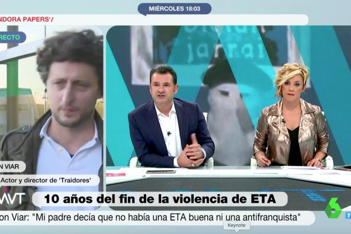 La mayoría de programas de televisión de España llevan días abordando el décimo aniversario del fin de ETA con especiales de todo tipo. Este miércoles, Cristina Pardo e Iñaki López entrevistaron en Más Vale Tarde a Jon Viar, director de Traidores, en el que cuenta la vida de su padre, miembro de la banda terrorista en los años 60.