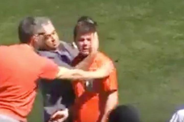 Como se puede ver en el vídeo, el joven colegiado se marcha a la banda cabizbajo y se sienta llorando mientras algunos aficionados le consuelan y otros reprochan al resto su actitud.
