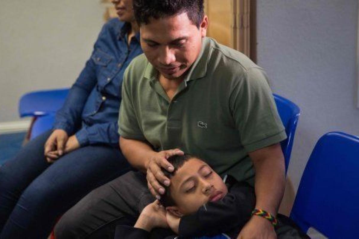 Un hombre con su hijo en un centro de detención en EEUU.AFP