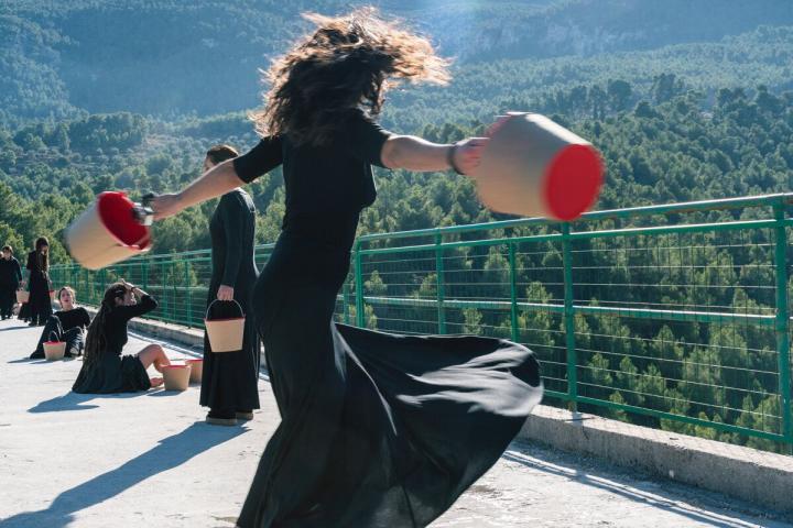 Por su parte, el otro proyecto seleccionado es “XIII”, una performance de Paloma Orts, acompañada por la mediación artística de Miriam Domènech. Se trata de una acción en la que trece mujeres vestidas de negro dan vueltas sobre su propio eje mientras sostienen dos cubos de metal llenos de agua (vida) y cenizas (muerte) para sumergirse en un estado de catarsis, con la idea de “generar una fuerza extrema nacida del latido de las mujeres que, unidas, transitan del silencio a la palabra”.