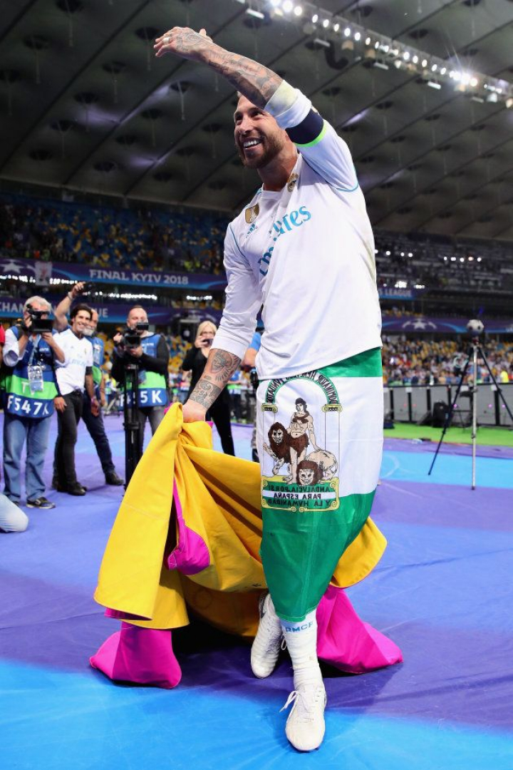Siempre que gana un título con el Real Madrid, Ramos se pone una bandera de Andalucía, su lugar de nacimiento, como homenaje a sus paisanos.