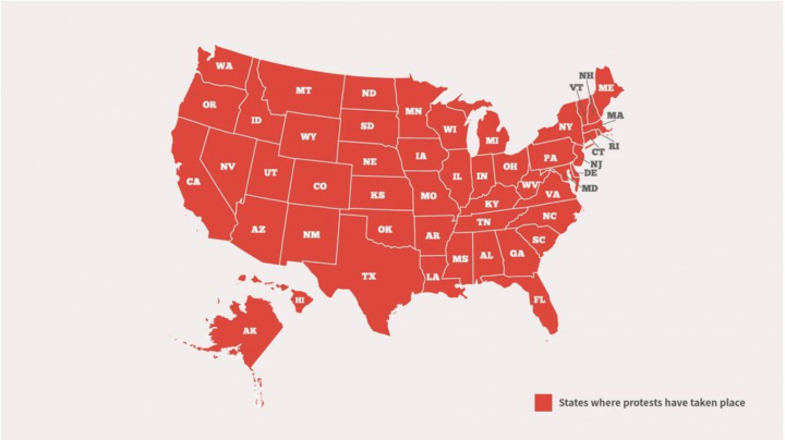 Mapa de las protestas en EEUU.UK HuffPost