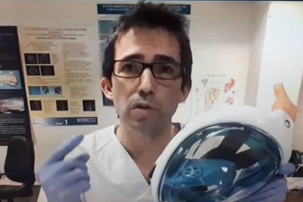 “Nos juntamos con ingenieros, con gente de Airbus, que nos permitieron optimizarla”, ha explicado Pérez-España, quien ha matizado que su artilugio “es una adaptación no homologada que ha hecho el hospital, validada por neumología, y se han llevado a cabo pruebas con pacientes y la mejoría existe”.