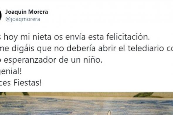 “Pues hoy mi nieta os envía esta felicitación. No me digáis que no debería abrir el telediario como grito esperanzador de un niño. ¡Es genial!”, ha dicho en su perfil de la red social.