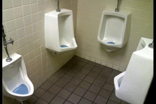 Llevando la incomodidad de los urinales contiguos AL EXTREMO. (via TV Refill)