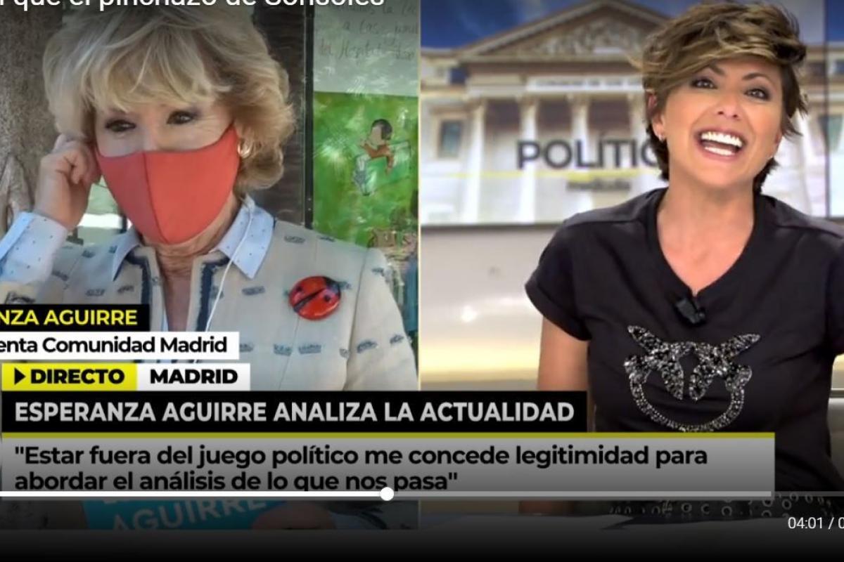 Un micrófono ha traicionado a Esperanza Aguirre, expresidenta de la Comunidad de Madrid, durante la entrevista que Sonsoles Ónega le estaba haciendo en su programa de Telecinco, Ya es mediodía.