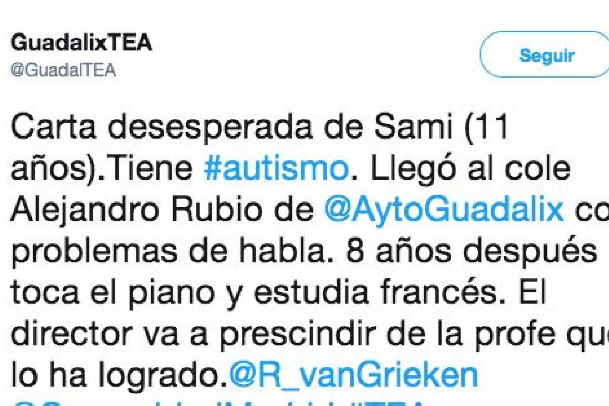 Como ha informado en el propio tuit la cuenta de las familias de alumnos con Trastorno Generalizado del Desarrollo (TGD), Sami “llegó al cole Alejandro Rubio de Guadalix de la Sierra -Madrid- con problemas de habla. 8 años después toca el piano y estudia francés”.