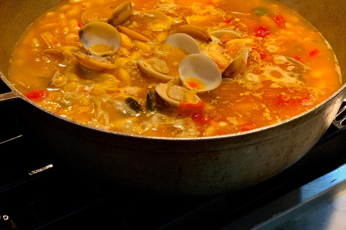 Un plato ideal para días de frío: marmita de pochas (o alubias) con almejas