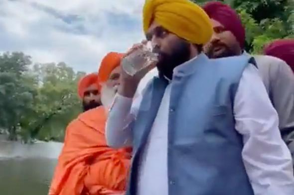 El primer ministro de la provincia india de Punjab, Bhagwant Mann, quiso demostrar que el río sagrado Kali Bein, cuyas aguas son famosas por lo contaminadas que están, en realidad está limpísimo.