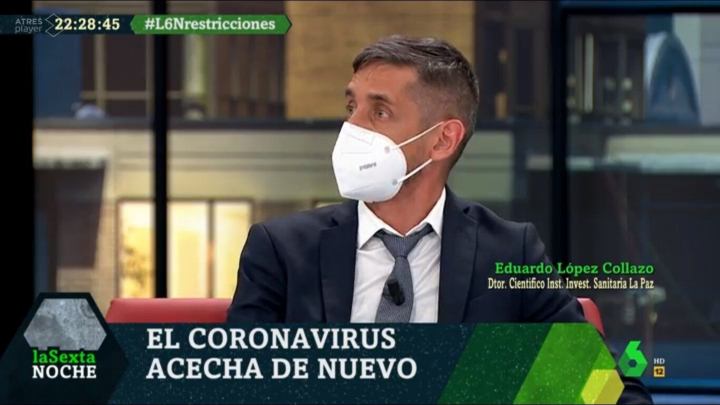 Así, López-Collazo no se quitó el cubrebocas durante su intervención en el espacio de laSexta. En redes sociales, el experto recibió multitud de mensajes en los que aplaudían su decisión.