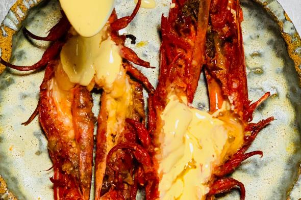 Primero: Carabineros a la sartén con mahonesa ponzu