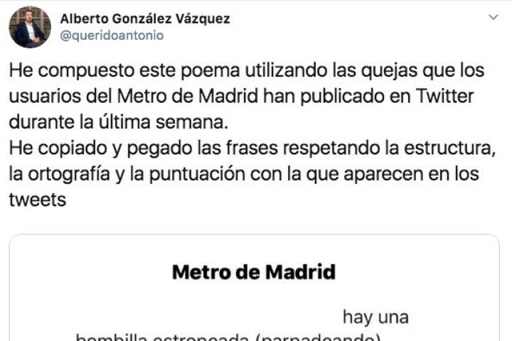 He compuesto este poema utilizando las quejas que los usuarios del Metro de Madrid han publicado en Twitter durante la última semana.