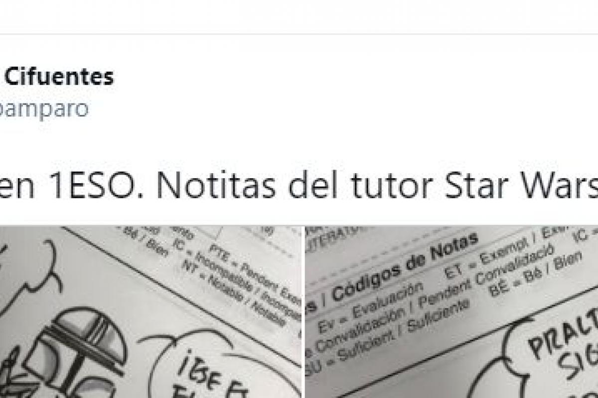 A una alumna que había obtenido notables y sobresalientes, el docente le dibujó un mandaloriano con el siguiente mensaje: “Ese es el camino”. “Enhorabuena aprendiz de jedi”, le puso a otro alumno.
