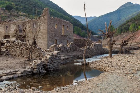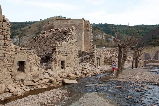 Sin embargo, las escasas nevadas del último invierno y la falta de lluvia de los meses pasados ha hecho descender el nivel del agua hasta un mínimo histórico, por lo que ahora se puede ver el pueblo entero.