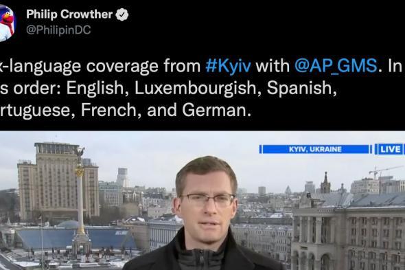 El periodista de Associated Press Philip Crowther ha arrasado en Twitter al mostrar su cobertura sobre el conflicto entre Rusia y Ucrania. ¿La razón? El reportero lo hace en seis idiomas: español, francés, inglés, portugués, alemán y luxemburgués.