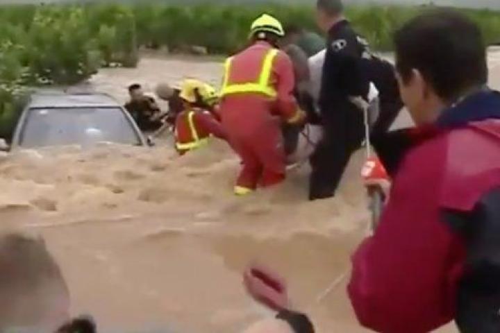 Un reportero de Antena 3 ayuda a rescatar a tres ancianos sorprendidos por una riada