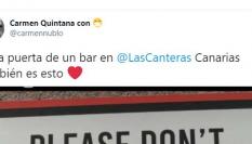 El periodista Íker Ibáñez ha empezado su reportaje desde dentro de un local y poco después ha pasado a la terraza, donde sí había más personas. Lo que no esperaba el reportero es encontrarse en una de las meses a tres turistas francesas.