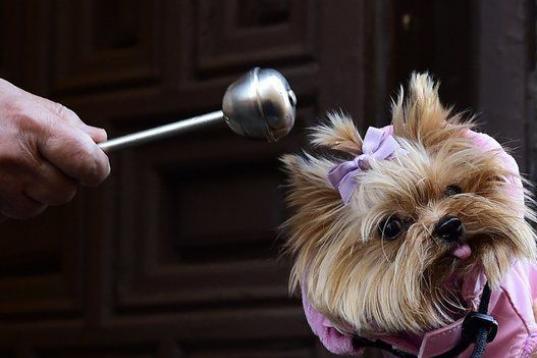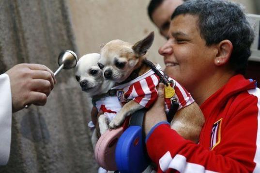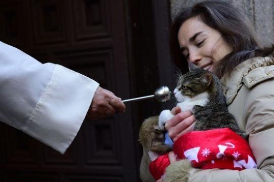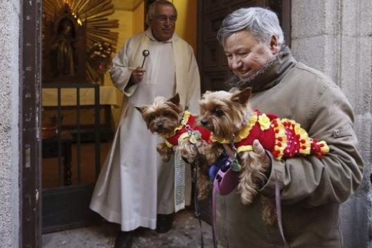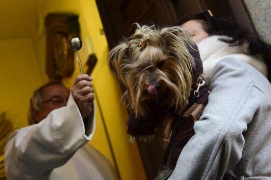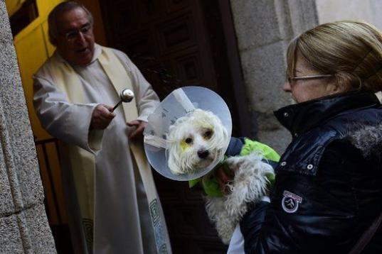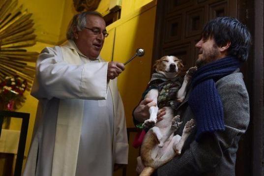 Al conectar desde plató con Masegosa, hemos podido ver al reportero sujetando en brazos a un perro pequeño que iba a ser “bendecido”.