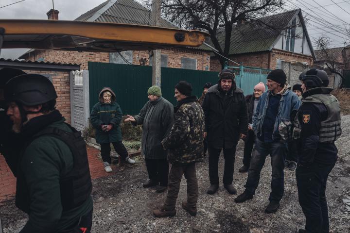 En la instantánea aparecen seis personas con las identidades tapadas escuchando lo que parece que le dice un integrante del Servicio de Seguridad de Ucrania.