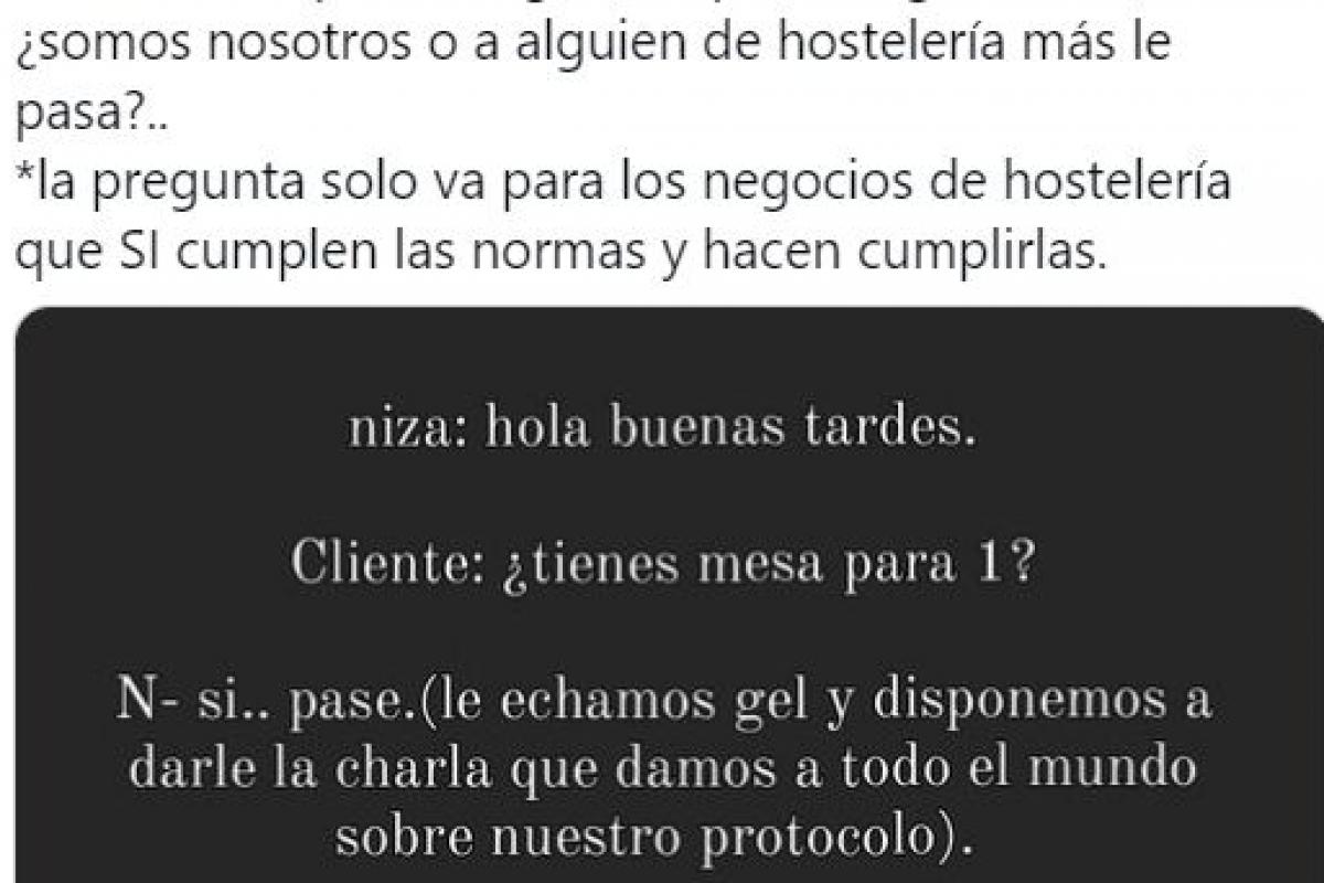 ″¿Somos nosotros o a alguien de hostelería más le pasa? La pregunta solo va para los negocios de hostelería que SÍ cumplen las normas y hacen cumplirlas”, han avisado en el tuit.