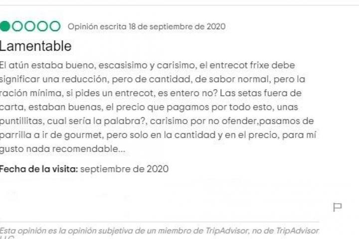 “Pasamos de parrilla a ir de gourmet, pero solo en la cantidad y en el precio, para mí gusto nada recomendable...”, zanja el cliente en su opinión.