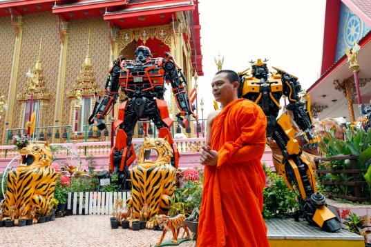 No sabemos si algún sacerdote copiará la idea, pero los sacerdotes budistas de este templo tailandés han adquirido las esculturas, hechas con piezas descartadas y metales reciclados de viejos vehículos, con dinero de donaciones. Su objetivo: inspirar y atraer a los niños y jóvenes y a sus familias para que conozcan el budismo y lo practiquen.
