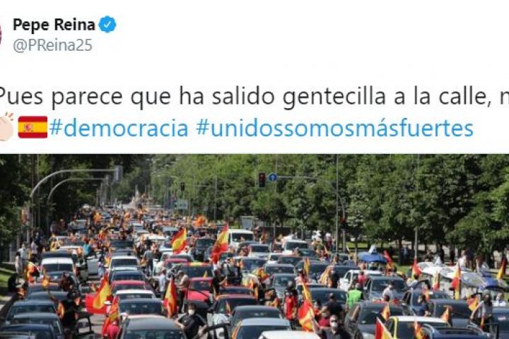 “Ah! Pues parece que ha salido gentecilla a la calle, no??”, escribió Reina adjuntando una fotografía de las protestas.