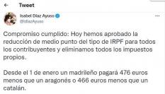 Pero Ayuso insiste: “Quiero darle normalidad a una situación que se sucede por todo el país”. La presidenta madrileña se refiere así a lo que ocurre en autonomías como Galicia o Andalucía, donde Feijóo y Moreno, presidentes regionales, son también presidentes del partido regional.