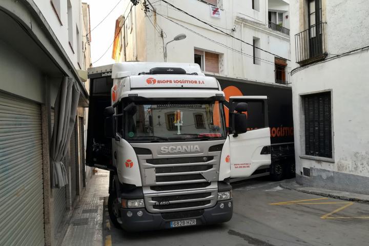 Un tráiler se empotra en una calle semipeatonal del centro de Sant Pol de Mar
