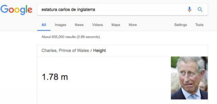 Eso hizo @raulsensato, quien primero miró la altura de Carlos de Inglaterra y encontró esto: