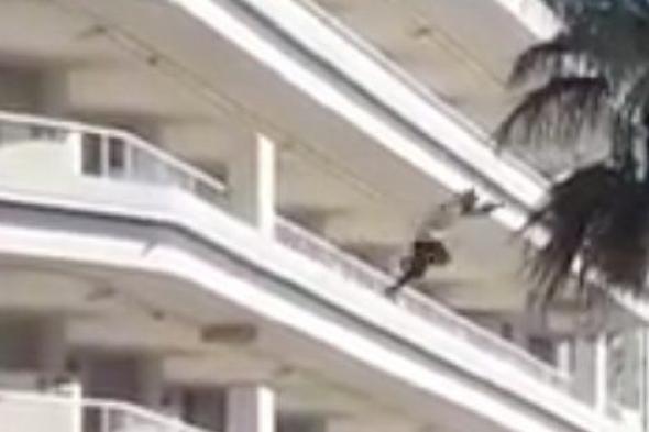 La imagen fue captada por un testigo que grabó y compartió en Facebook cómo el joven iba de un lado a otro del pasillo de los apartamentos, pero por fuera de la barandilla.