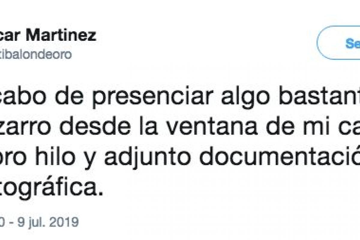 “Acabo de presenciar algo bastante bizarro desde la ventana de mi casa”, avisa Martínez, antes de hacer el ya tradicional hilo de Twitter.