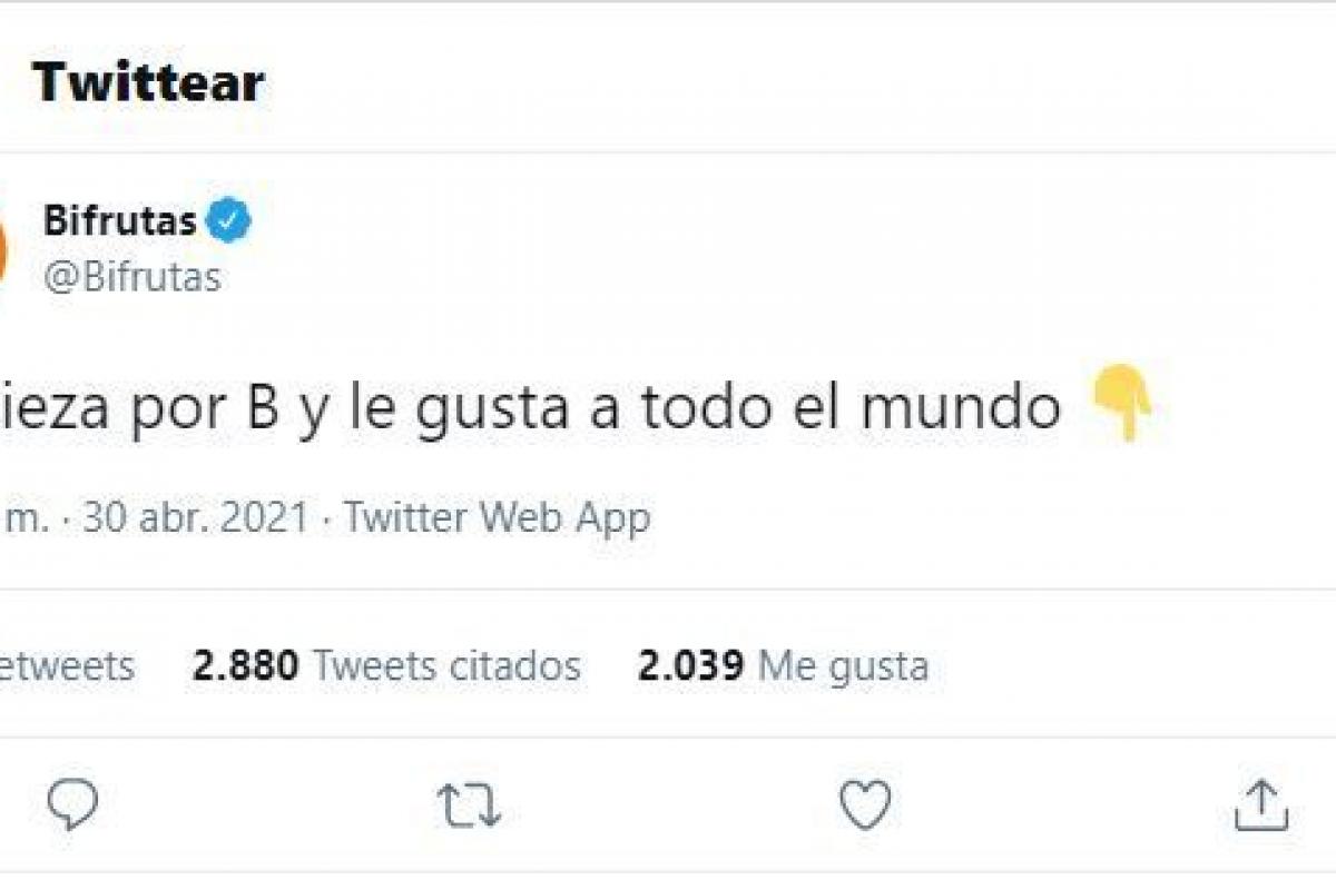 La marca de bebidas Bifrutas propuso hace unos días un juego a sus seguidores en Twitter. En una especie de Pasapalabra, debían adivinar un acertijo: “Empieza por B y le gusta a todo el mundo”.
