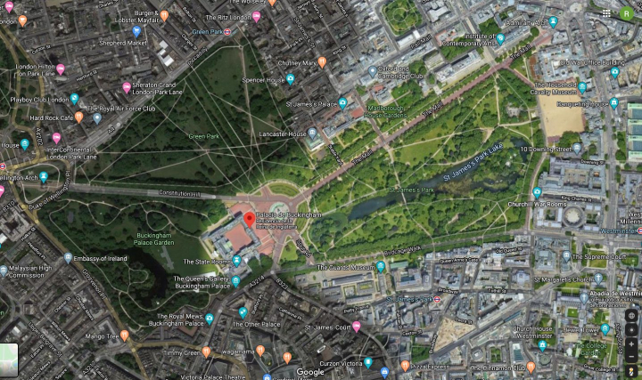 Un usuario de la red social Reddit se ha dado cuenta de una rareza que incluye Google Maps cuando se pasa sobre el Palacio de Buckingham de Londres.