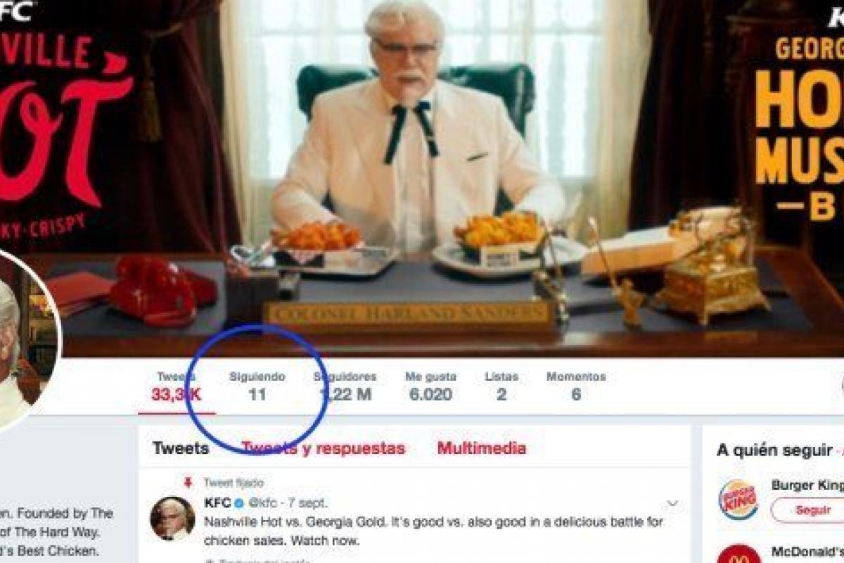 Un usuario se ha percatado de quiénes son las 11 personas a las que KFC sigue en Twitter