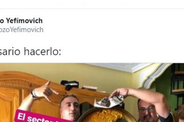 Una paella desmoronándose, cinco personas a su alrededor y una imagen que es historia de las redes sociales en España. Ese meme que tantas vueltas ha dado ha sido utilizado por un usuario (@MozoYefímovich) de Twitter para resumir la actual situación del coronavirus.