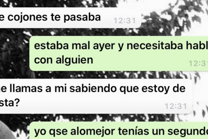En dicha charla, podemos ver el primer mensaje del chico, bastante cortante, a su novia: ”¿Qué cojones te pasaba?”.