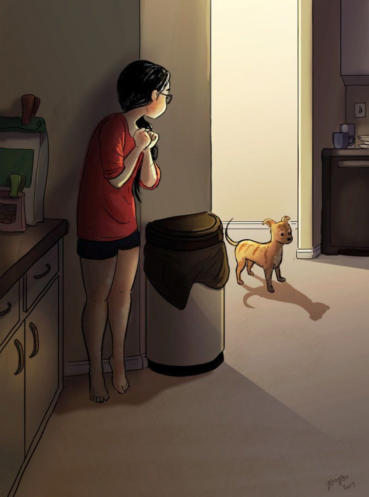 Yaoyao Ma Van As, una dibujante e ilustradora de 34 años de Los Angeles (EEUU), ha captado la belleza de esa intimidad en una serie de dibujos.