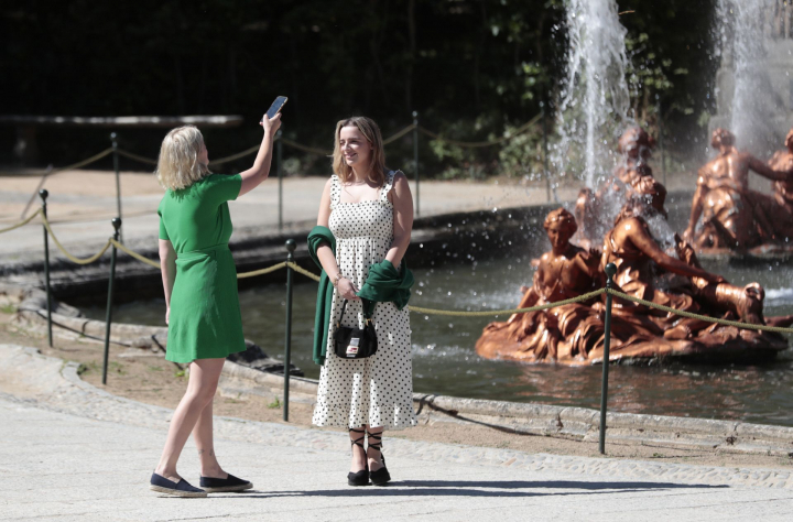 El grupo ha podido apreciar los tapices en el Palacio y ha recorrido una parte de los jardines, donde han disfrutado de los juegos de agua de las tres grandes fuentes que solo se encienden durante tres días al año o en ocasiones excepcionales, como esta visita.