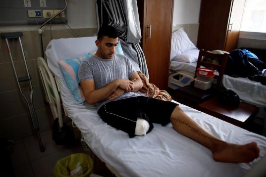 Alaa Al-Daly, de 21 años, ha perdido su pierna tras los disparos del Ejército. Ni siquiera nueve operaciones han evitado la amputación.