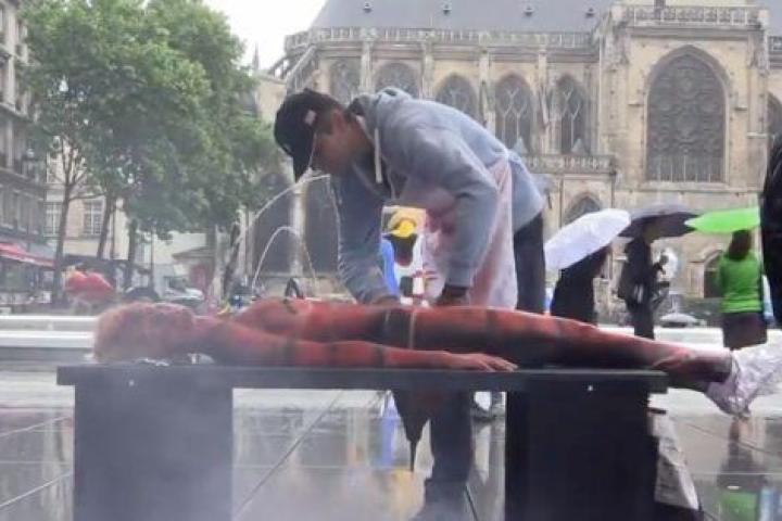 Este 1 de julio ha tenido lugar en pleno centro de París (Francia) una iniciativa del grupo Vegan Impact para concienciar a los ciudadanos sobre el consumo de carne.
